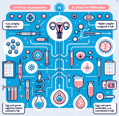 | 과정의 복잡성 | 상대적으로 간단함. 정자를 여성의 자궁 내에 주입 | 매우 복잡함. 난자와 정자를 실험실에서 결합시켜 수정한 후 자궁에 이식 |