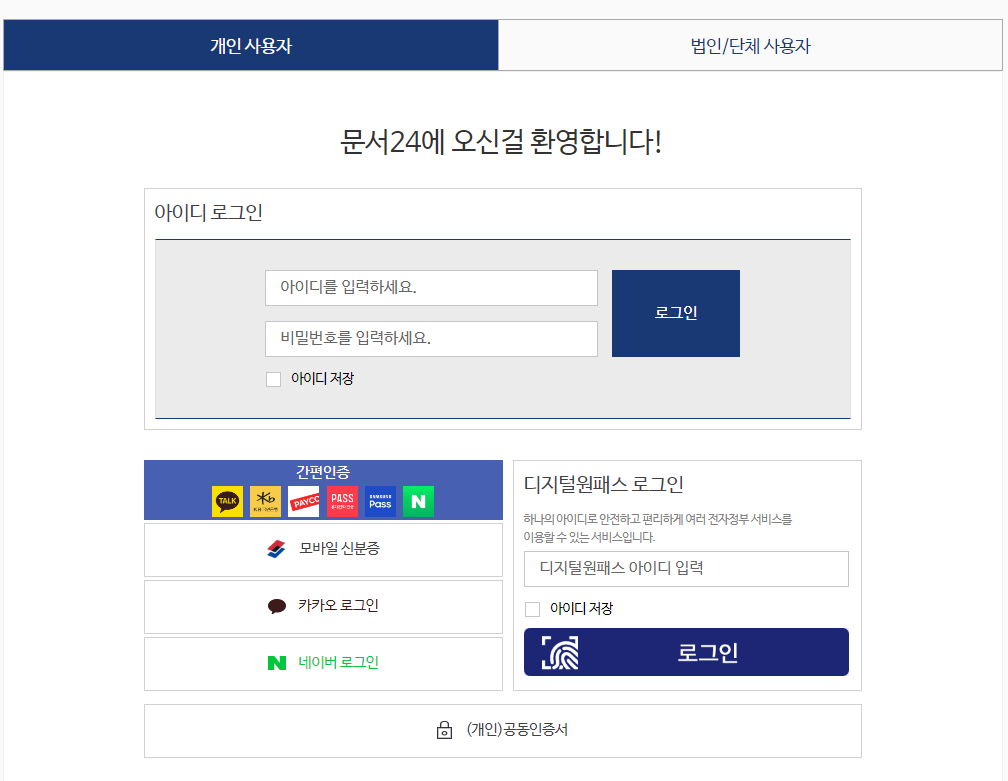 회원 가입을 하시거나 아니면 간편인증 및 기타 로그인 방식으로 통해서 로그인을 하시길 바랍니다. |